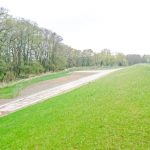 Der Polder reagiert ab einem HQ25 und wird durch ein Klappenwehr und eine Überlaufstrecke gezielt geflutet.