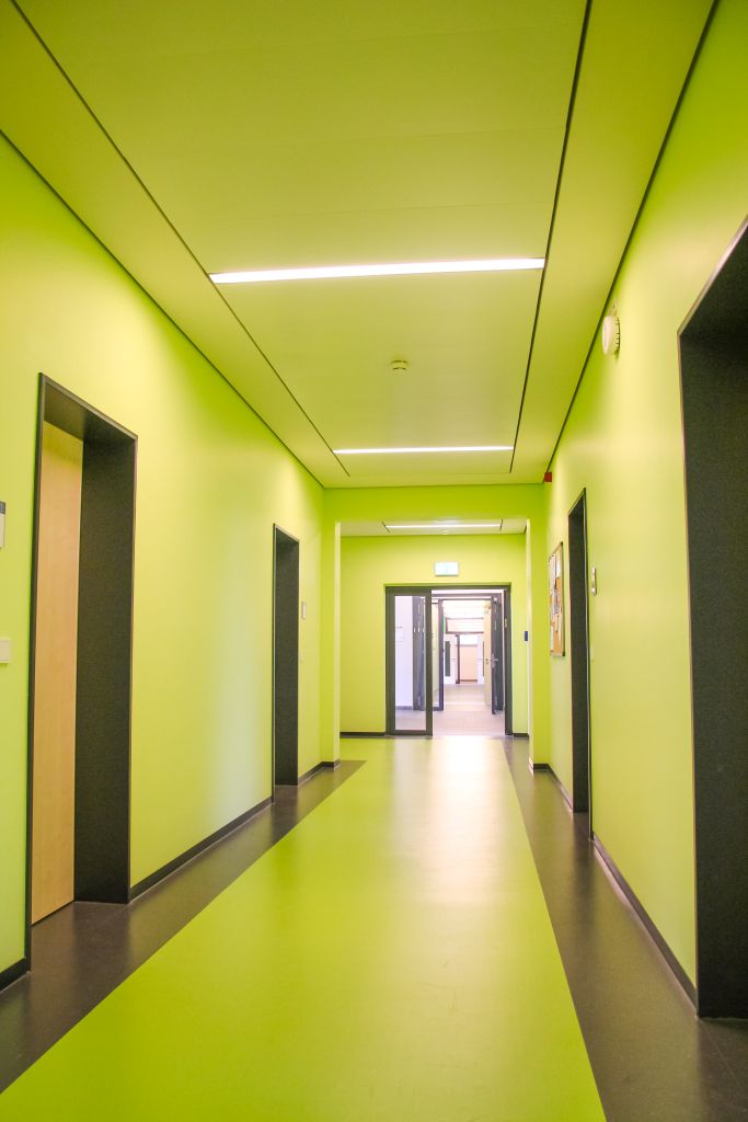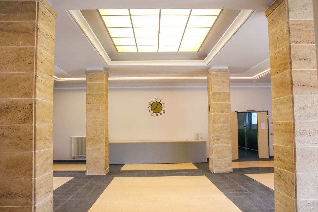 Die Sanierung des denkmalgeschützten Bestandgebäudes und Errichtung des Neubaus erfolgte unter Berücksichtigung der bauphysikalischen Anforderungen und des bautechnischen Brandschutzes für die künftige Hochschulnutzung.