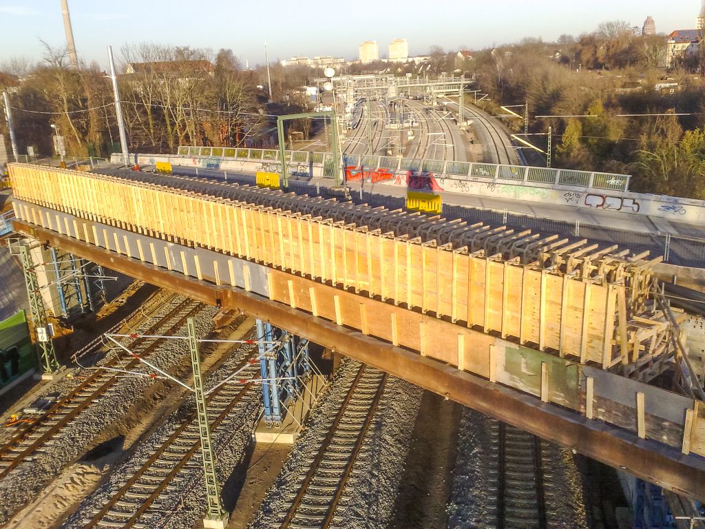 In 3 Bauabschnitten realisierte die Stadt Leipzig den Ersatzneubau der Bornaischen Brücke einschließlich grundhaftem Ausbau der Bornaischen Straße auf 600 m Länge im Süden von Leipzig. Dies wurde aufgrund des schlechten Bauzustands des vorhandenen Bauwerks erforderlich. Die Bornaische Brücke überführt die Bornaische Straße als vierstreifige Verkehrsachse mit zweigleisigem Straßenbahnverkehr der Linie 11 der Leipziger Verkehrsbetriebe über vier Gleise der DB AG. Während der Baumaßnahme ist der Bahnverkehr unter der Brücke nicht zu beeinträchtigen. Der Straßenbahnverkehr und die Funktionalität aller betroffenen Medien sind ständig zu gewährleisten.