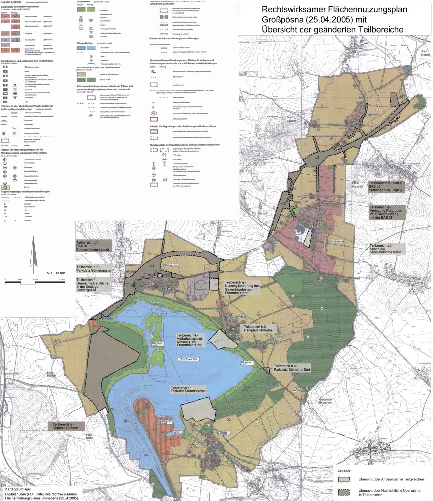 Die Änderungen umfassen 9 Teilbereiche. Diese werden im Erläuterungsbericht ausführlich beschrieben, der jeweilige Änderungsbedarf präzise umrissen und begründet sowie zeichnerisch dArbeitsgemeinschaftstellt. Dabei spielt die touristische Nachnutzung der Tagebaufolgelandschaft rund um den 2014 freigegebenen Störmthaler See eine zentrale Rolle.