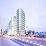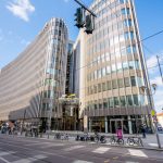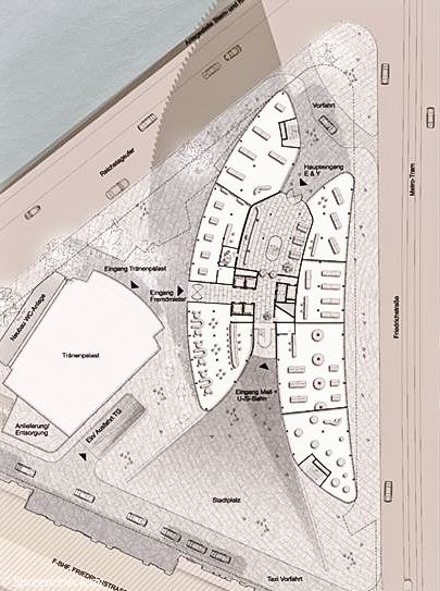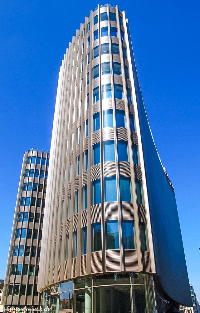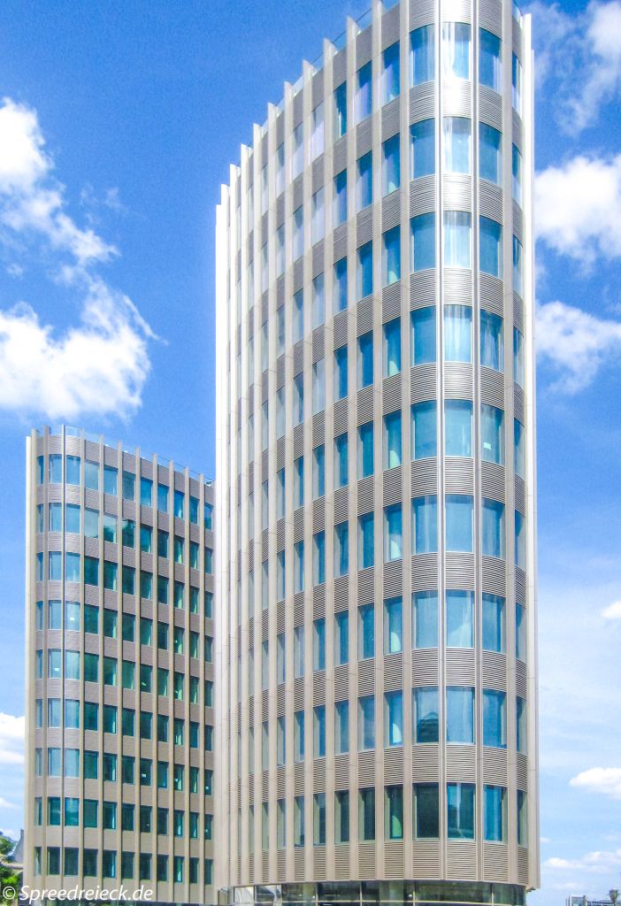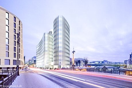Auf dem Gelände des Spreedreiecks zwischen Reichstagsufer und Bahnhof Friedrichstraße entstand ein Geschäftshaus mit drei Untergeschossen nach Entwürfen des Berliner Architekten Mark Braun. Dabei handelt es sich um zwei gläserne Hochhaustürme mit zehn bzw. zwölf Geschossen. Über dem Sockel mit zwei Tiefgaragenebenen bleibt der unter Denkmalschutz stehende Tränenpalast erhalten.