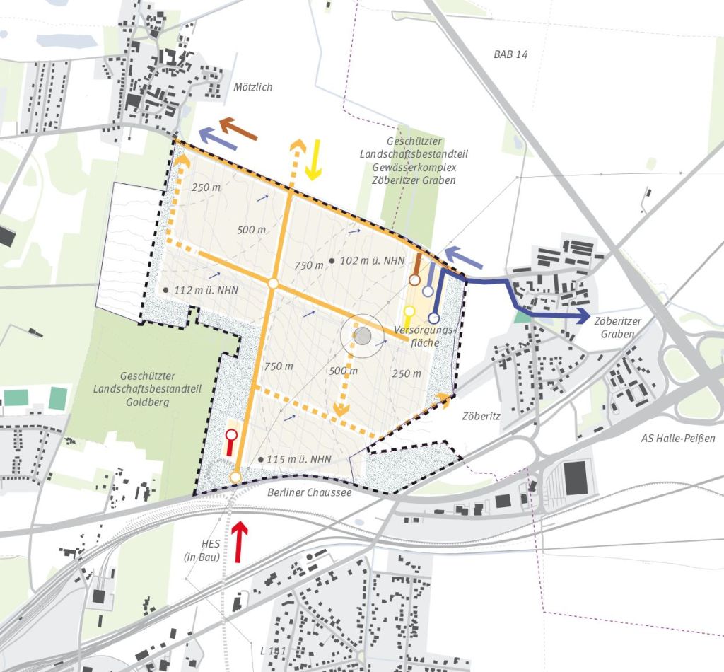 Wesentliche Aufgabe der Stadtentwicklung und Wirtschaftsforderung der Stadt Halle (Saale) ist es, für ein angemessenes Gewerbeflächenangebot zu sorgen, um die Expansion bestehender und die Ansiedlung neuer Betriebe zu ermöglichen. In diesem Kontext wurde zur mittel- bis langfristigen Sicherung des Gewerbeflächenangebotes in Halle (Saale) und Aktivierung von Flächen für industrielle und gewerbliche Nutzung eine Untersuchung zur Bewertung möglicher Standorte für großflächige (über 10 ha) und mittelgroße (zwischen 5 ha und 10 ha) Ansiedlungen auf Brownfields (Brachflachen im Siedlungsbereich) und Greenfields (Planungen auf der „grünen Wiese“) durchgeführt. Dabei wurden 12 Potenzialräume identifiziert und bewertet. Im Ergebnis der Betrachtung liegen drei grundsätzlich geeignete Standorte in Autobahnnähe für eine weitergehende Betrachtung und Entwicklung vor.