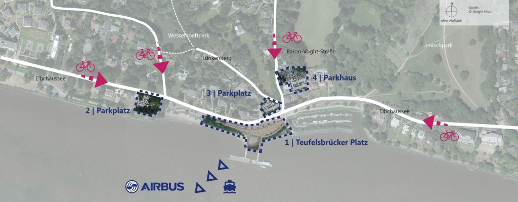 Mobilitätsmodell folgend sowie auf Grund des gestiegenen Bedarfs an Fahrradabstellplätzen (von 2012-2015 etwa um 30 %) sollten mit der Machbarkeitsuntersuchung Potenziale und Nutzungsmöglichkeiten für Fahrradabstellmöglichkeiten im Umfeld des Teufelsbrücker Platzes in Nähe zum Fähranleger auf der Nordseite der Elbe untersucht werden.