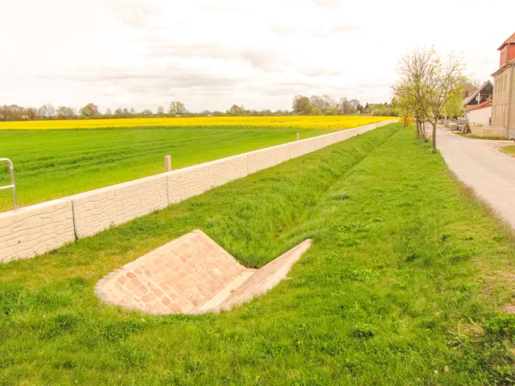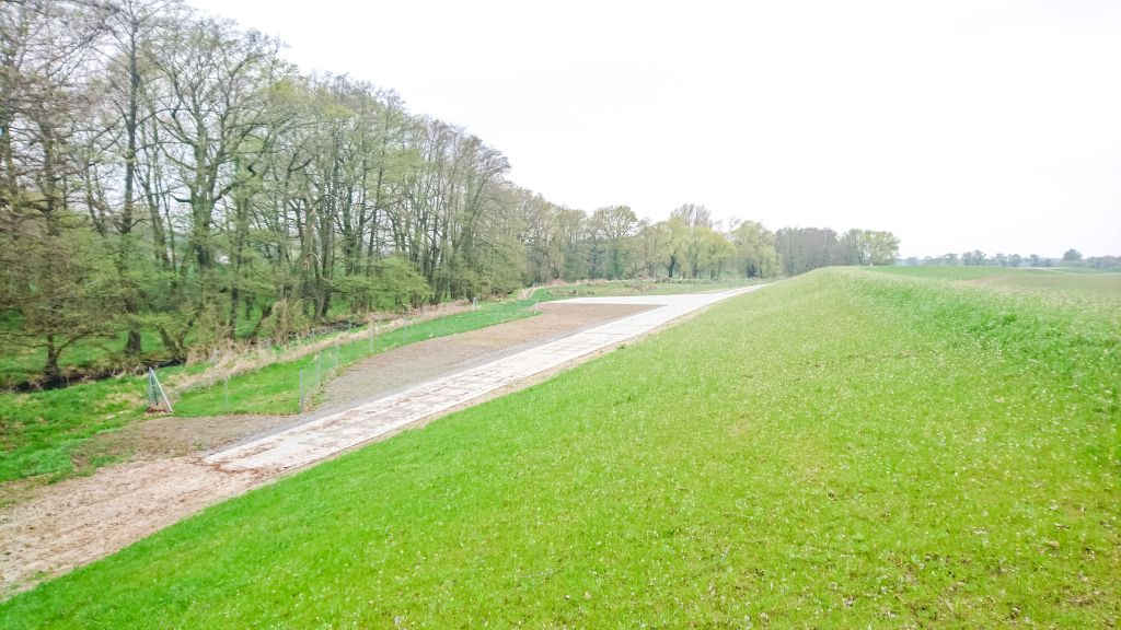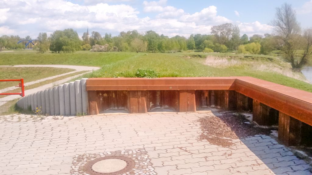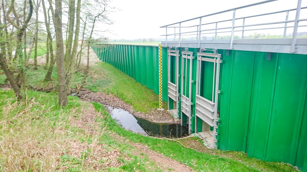 Der Polder reagiert ab einem HQ25 und wird durch ein Klappenwehr und eine Überlaufstrecke gezielt geflutet.